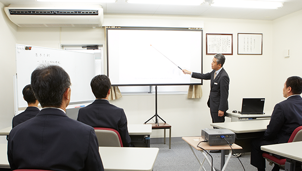 東雲のホスピタリティカレッジ(本社研修施設)にて接客接遇の基礎を学びます。オリジナルの教材を用いて接客の礼儀・マナーの基本から、乗車されたお客さまの状況に応じた対応を座学・グループワーク形式で学びます。基本から丁寧に学ぶ内容になっているため、タクシー業界未経験、接客未経験の方もご安心ください。